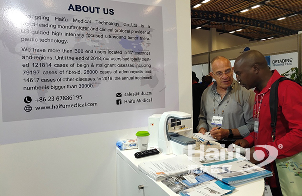 與會專家到訪海扶醫(yī)療展位,了解更多有關(guān)聚焦超聲消融無創(chuàng)治療婦科疾病的技術(shù)及臨床應(yīng)用情況。