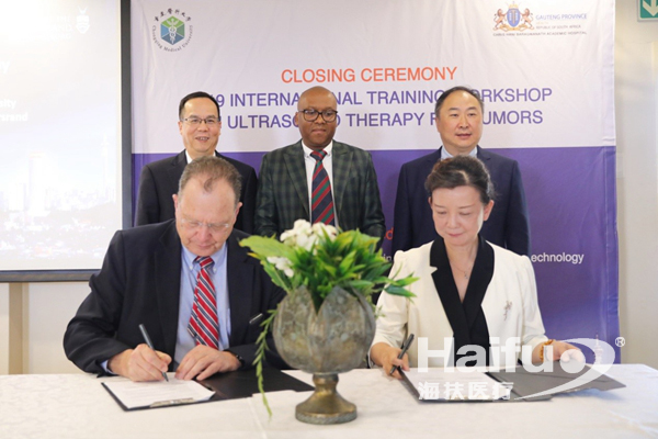 2019年9月,南非海扶®微無創(chuàng)中心開與重慶醫(yī)科大學(xué)聯(lián)合承辦了中國科技部資助的“聚焦超聲無創(chuàng)治療腫瘤技術(shù)發(fā)展中國家培訓(xùn)班”,22位來自非洲和亞洲13個發(fā)展中國家的臨床醫(yī)生獲得中國科技部頒發(fā)的結(jié)業(yè)證書。同時,南非金山大學(xué)與重慶醫(yī)科大學(xué)簽署合作備忘錄,為今后進(jìn)一步推進(jìn)相關(guān)技術(shù)合作和人才培養(yǎng)達(dá)成共識。聚焦超聲消融技術(shù),為非洲女性的健康保駕護航!