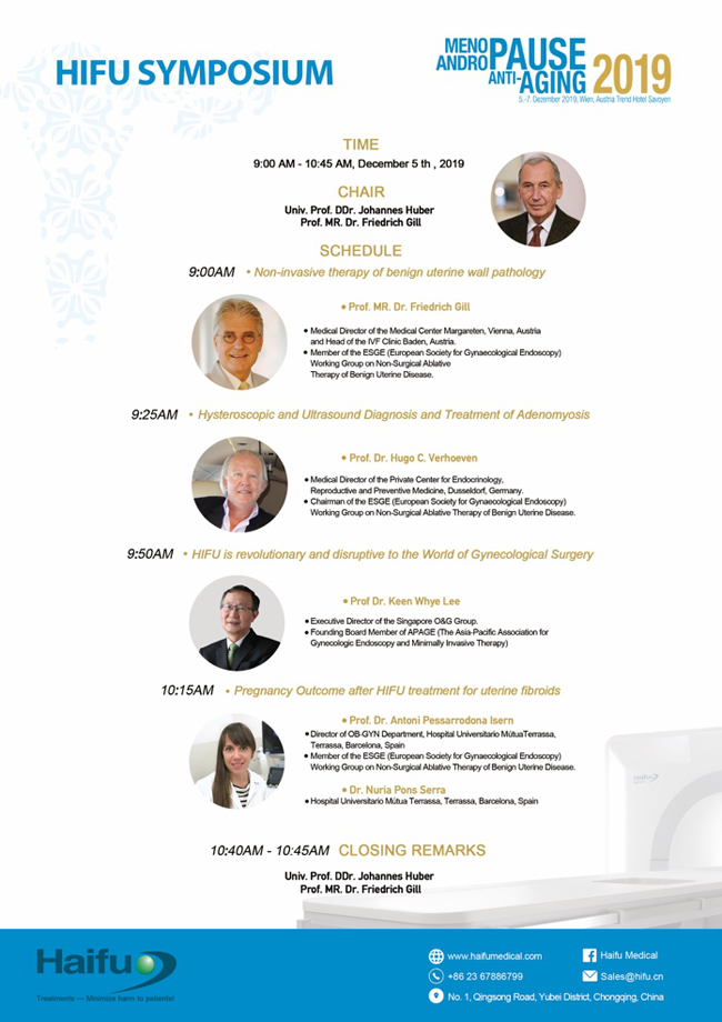 歐洲婦科內鏡協會(ESGE)的“非手術治療子宮良性疾”工作組主席Hugo C. Verhoeven教授和工作組成員Friedrich Gill教授(奧地利HIFU治療中心負責人)主持了海扶®研討會。