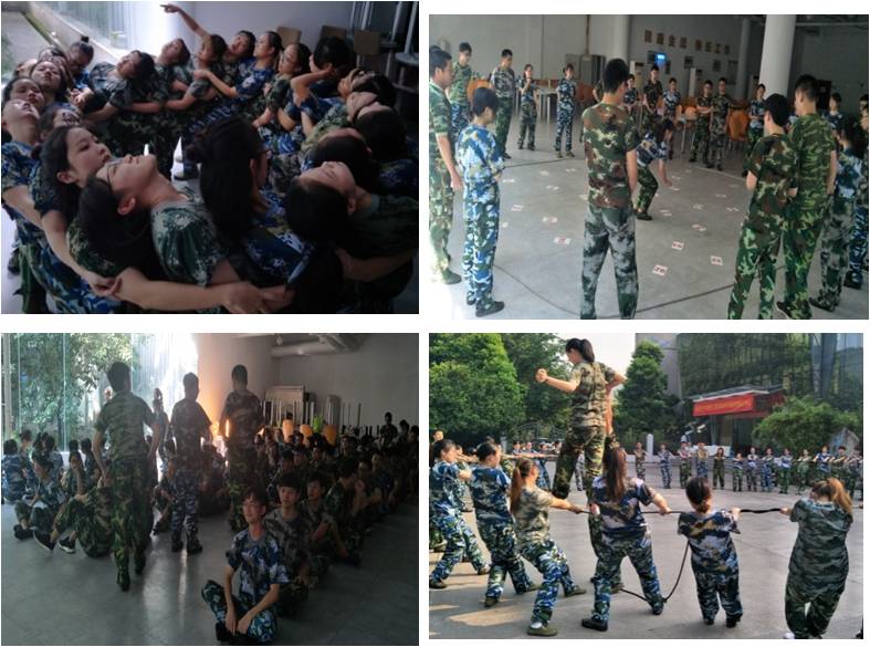 在12天的軍事綜合素質拓展訓練中,學生們創作了自己團隊的名字、隊訓、隊雕、隊徽以及隊歌,圍繞著團隊文化緊緊的凝聚在一起,滿懷激情地投入到老師和教官們精心準備的隊列訓練、拓展項目、電影、講座等一系列拓展活動中。