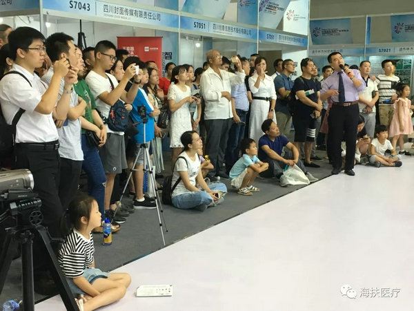 在聽主持人介紹這種治療技術(shù)是在中國·重慶原創(chuàng),并出口到25個國家及地區(qū)后,現(xiàn)場觀眾這樣的感嘆就沒停歇過,大部分觀眾拿起手機瘋狂拍照,有的更是直接錄起了視頻,做起了直播。
