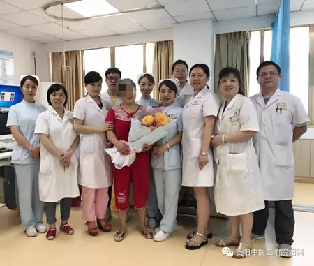 駱女士治療結(jié)束后,和醫(yī)護(hù)人員合影