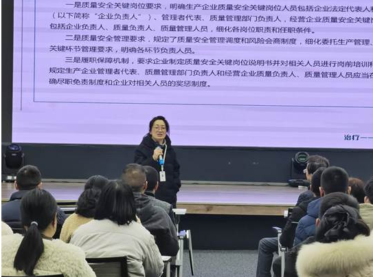培訓會上,企業(yè)負責人,總經(jīng)理蔣鋼作出了“全員貫徹落實《規(guī)定》,滿足企業(yè)合規(guī),保證產(chǎn)品質(zhì)量”的工作指示;管理者代表葉方偉發(fā)表了“責任到人”的見解,表達了全員學習法規(guī)的重要意義以及“任其職盡其責”的希冀;質(zhì)量負責人楊治蘭初步提出后續(xù)將建立工作小組對公司內(nèi)部進行自查自糾的工作計劃。