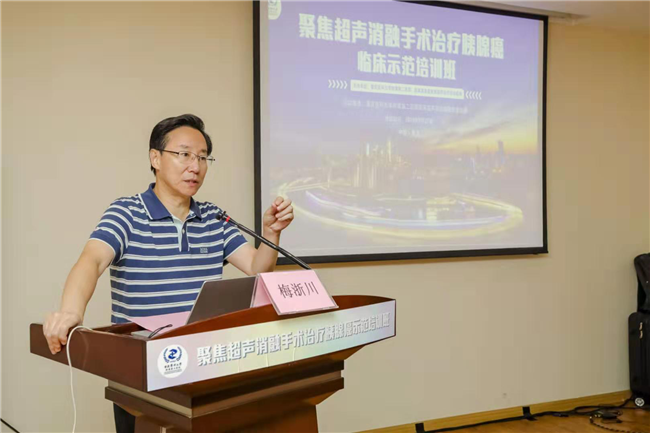 梅浙川副院長為培訓(xùn)班致詞,并向與會專家學(xué)員介紹了重慶醫(yī)科大學(xué)附屬第二醫(yī)院院史,我院HIFU腫瘤中心暨國家高強度聚焦超聲腫瘤治療培訓(xùn)基地學(xué)術(shù)團隊在聚焦超聲技術(shù)的基礎(chǔ)研究和臨床研究等方面取得的學(xué)術(shù)成績,在聚焦超聲手術(shù)治療惡性腫瘤尤其是胰腺癌,能夠顯著改善或控制癌痛,延長生存期,效果明顯,得到了國內(nèi)外同行和專家的一致認可和好評。