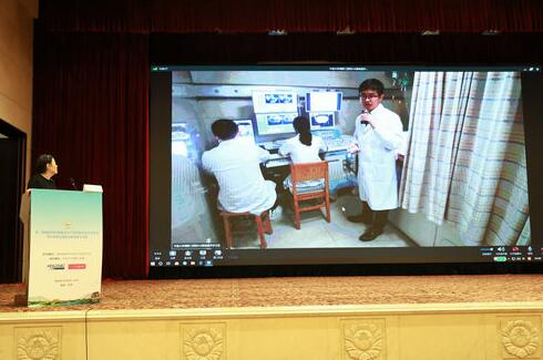 會(huì)上,薛敏教授分享了湘雅三醫(yī)院開展聚焦超聲治療的現(xiàn)狀,為使參會(huì)專家更直觀的了解不開刀、不流血、無創(chuàng)傷的FUS治療,薛敏教授現(xiàn)場(chǎng)連線湘雅三醫(yī)院聚焦超聲手術(shù)室,做了FUS治療子宮腺肌病 的實(shí)況直播。