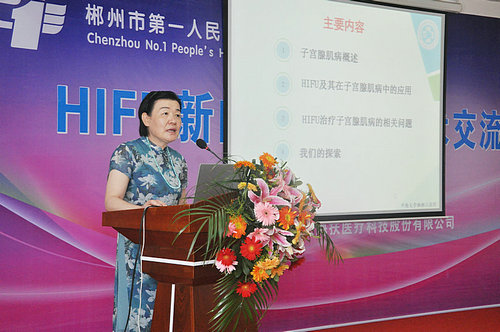 來(lái)自中南大學(xué)湘雅三醫(yī)院婦產(chǎn)科的薛敏教授做了《HIFU治療子宮腺肌病》的講座。薛敏教授首先祝賀郴州市第一人民醫(yī)院HIFU微無(wú)創(chuàng)治療中心的成立,并指出醫(yī)院科室學(xué)科要有所發(fā)展,就要不斷學(xué)習(xí)和引入新的技術(shù),此次醫(yī)院婦科引進(jìn)HIFU微無(wú)創(chuàng)治療這種不開(kāi)刀、不流血、保留器官的治療技術(shù),相信能為郴州的廣大女性患者帶來(lái)更多的福祉,并進(jìn)一步推動(dòng)郴州微無(wú)創(chuàng)醫(yī)學(xué)的發(fā)展。