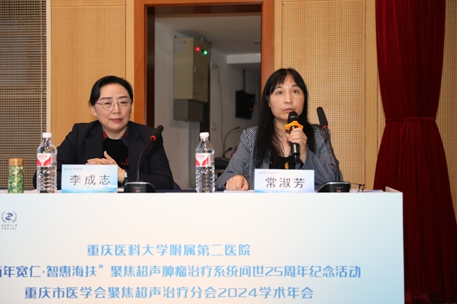 刑雅翕副主任致辭,重慶市聚焦超聲學科治療的發展,是靠著一代又一代超聲人積極響應健康中國建設的號召,不忘初心、牢記使命,主動承擔社會責任,積極推動全市各單位醫療協同發展。在新技術的推動和轉化創新方面持續發力,不斷打造具有重慶辨識度的知名品牌,為守護人民群眾健康、推動全市健康領域全面發展作出新的貢獻。期望重醫附二院未來繼續不斷提高醫療服務能力,加快推進醫學科技創新,充分發揮自身特色優勢,向著建設重慶領先、西南前列、全國一流名院的目標奮勇向前。